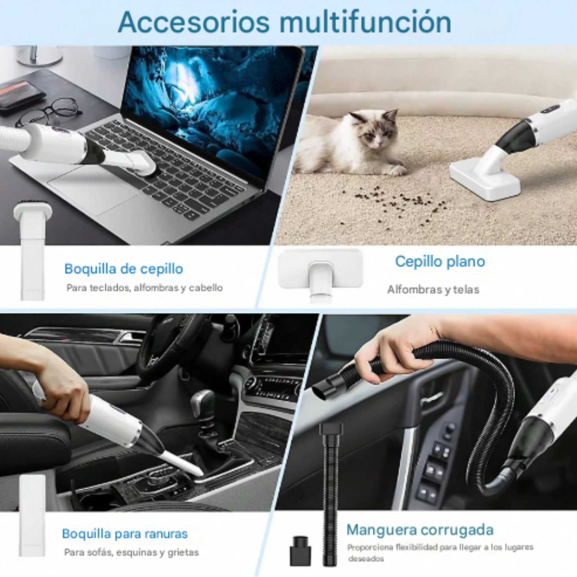 La Aspiradora Multifuncional Portátil está diseñada para brindarte potencia, comodidad y movilidad total. ¡Llega a donde otras no pueden!