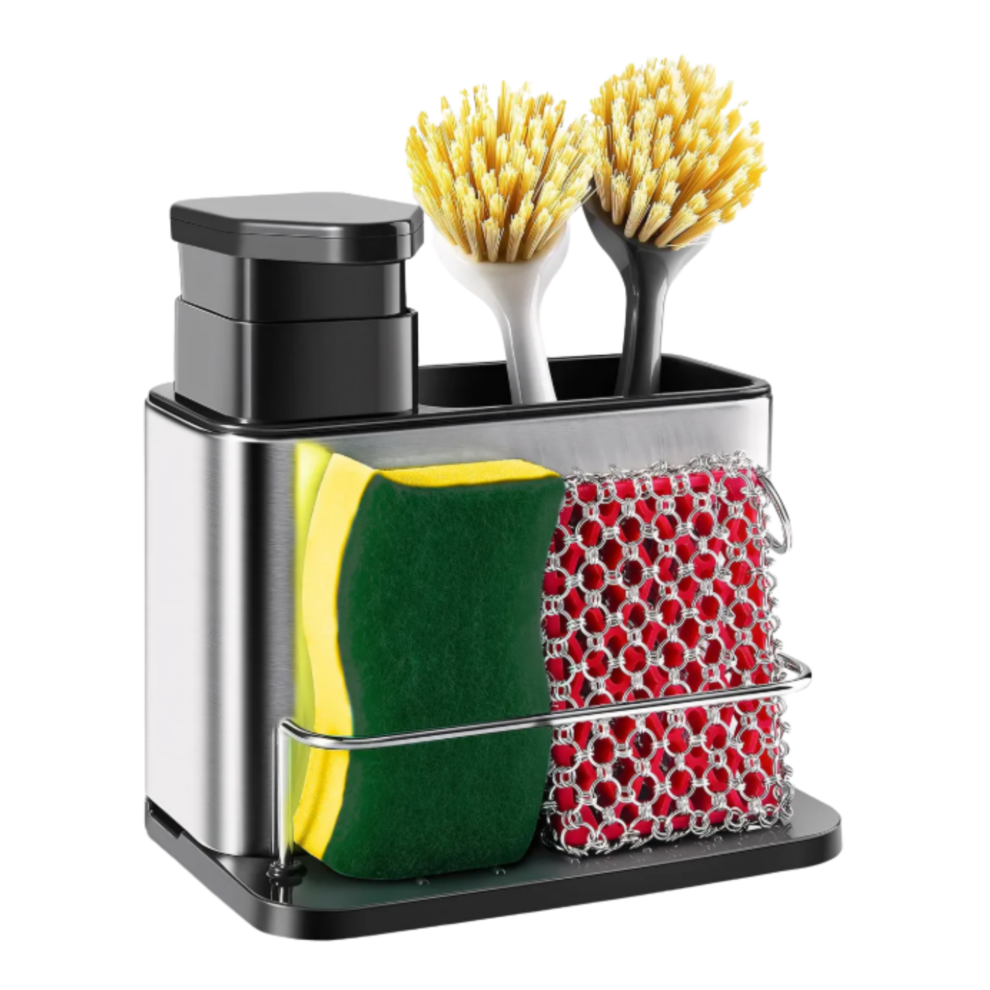 ✅ Su soporte integrado para esponjas mantiene el área limpia y ordenada, optimizando el espacio en la encimera.