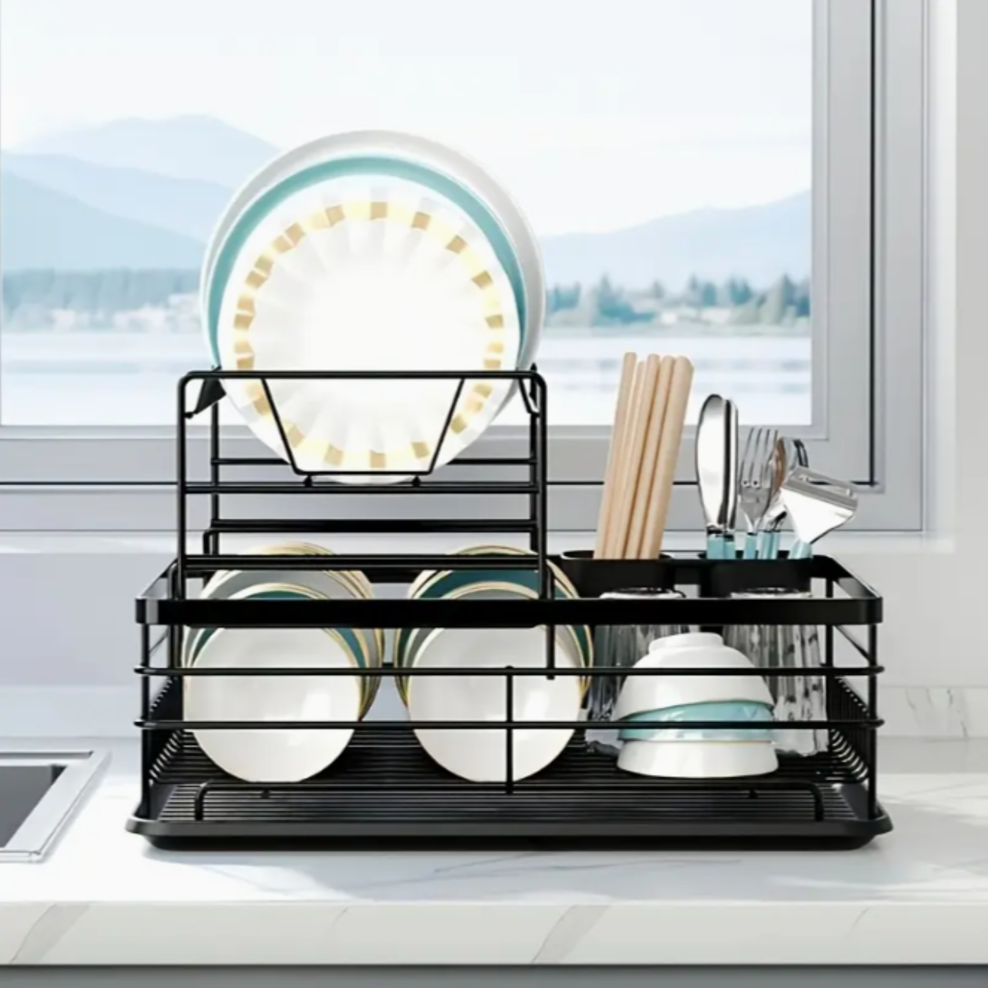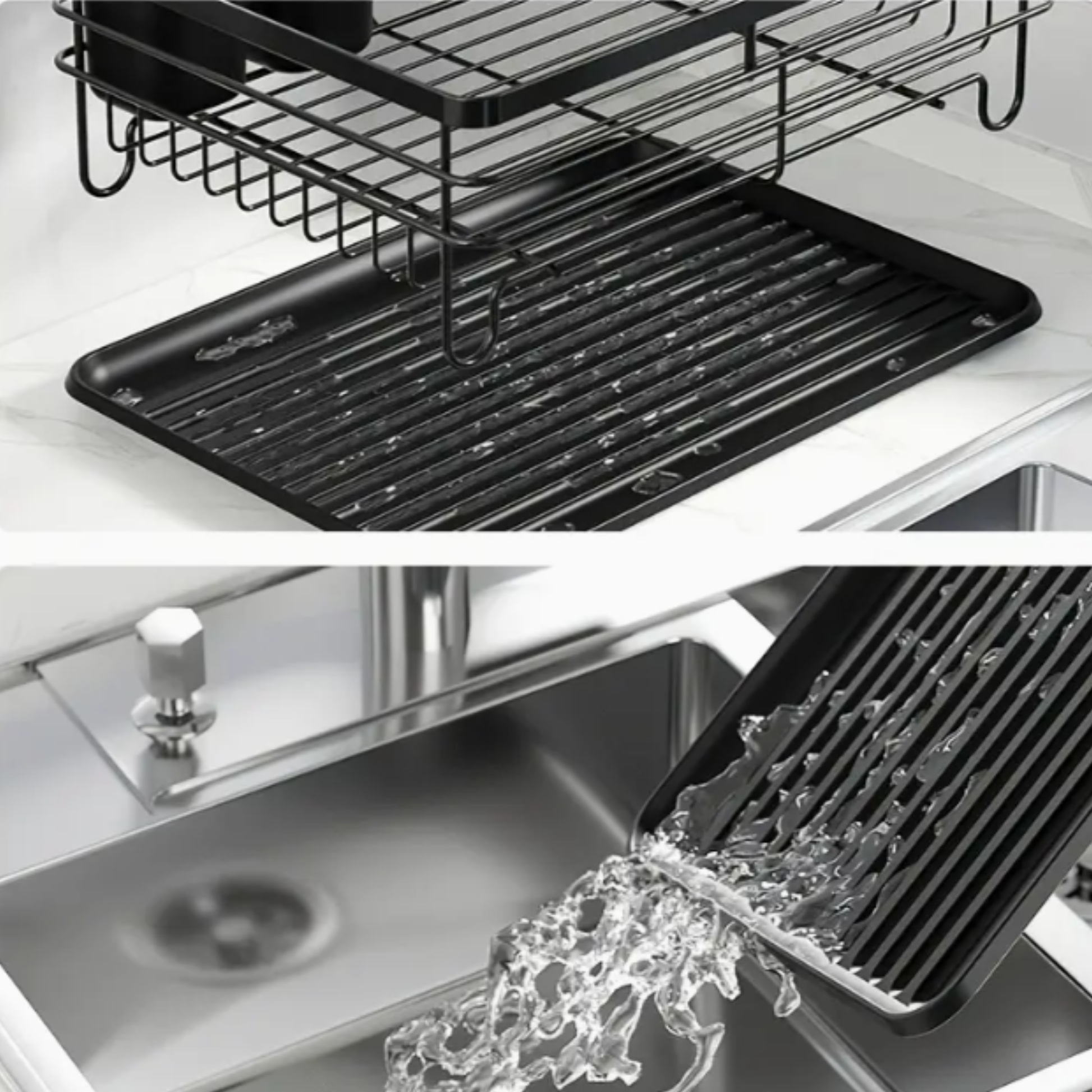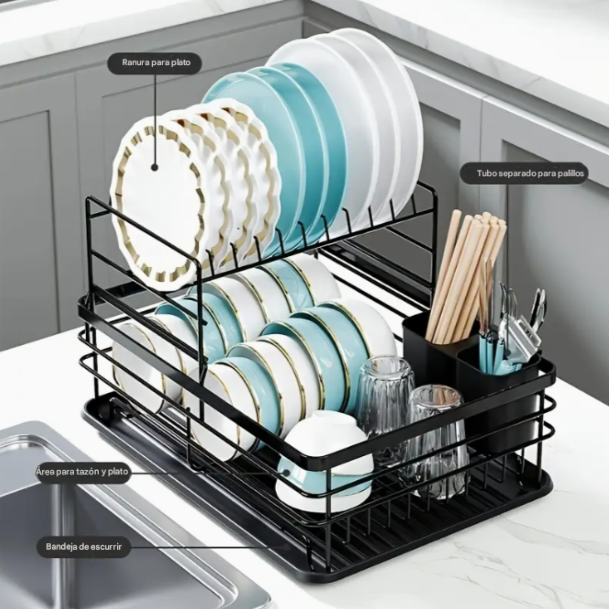 Su diseño de dos niveles está pensado para maximizar el espacio, permitiéndote secar más platos, vasos y cubiertos al mismo tiempo sin que tu mesón luzca saturado.