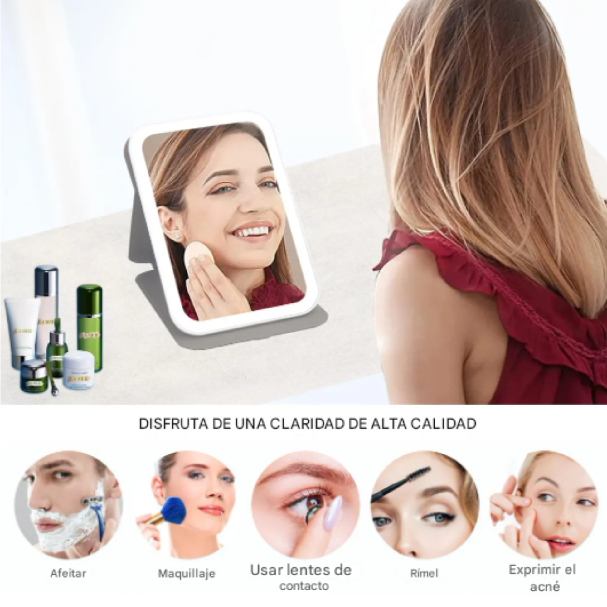 Si te encanta lucir bien y buscas precisión, portabilidad y estilo, este espejo es perfecto para ti.