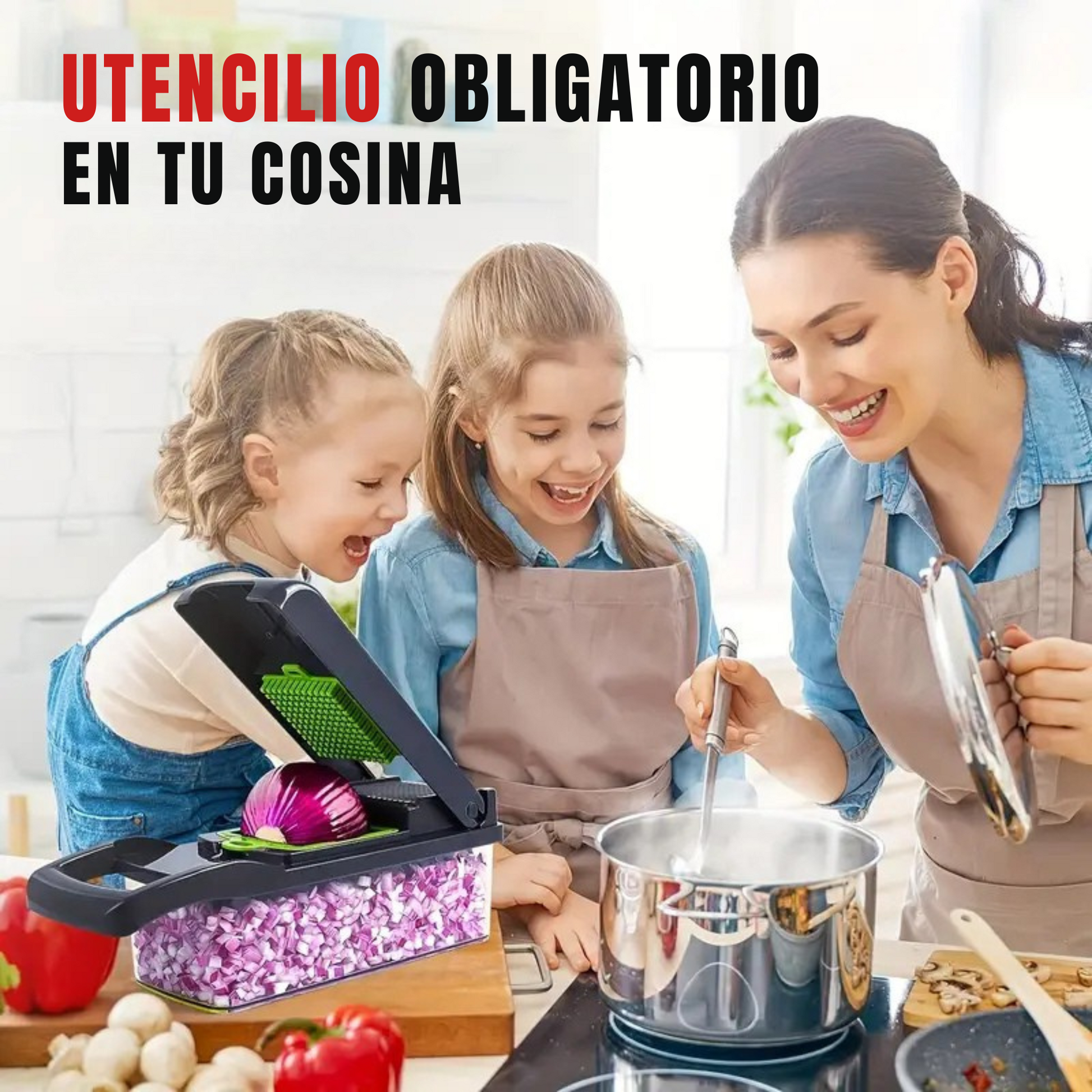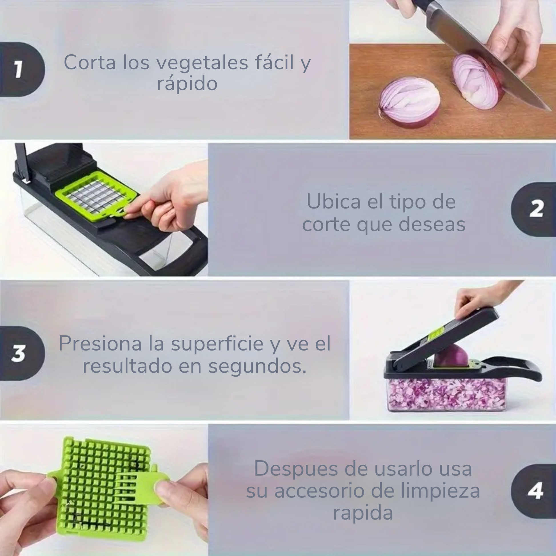 🔹 Versátil y duradero: ideal para cortar vegetales, frutas, hierbas y más, ahorrando tiempo y reduciendo el desorden
