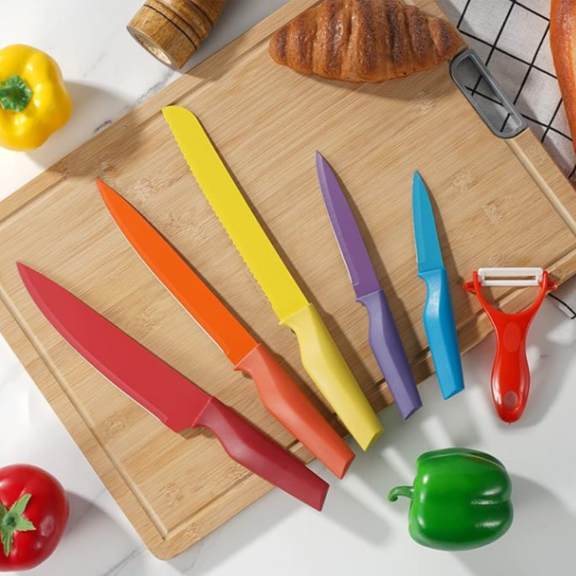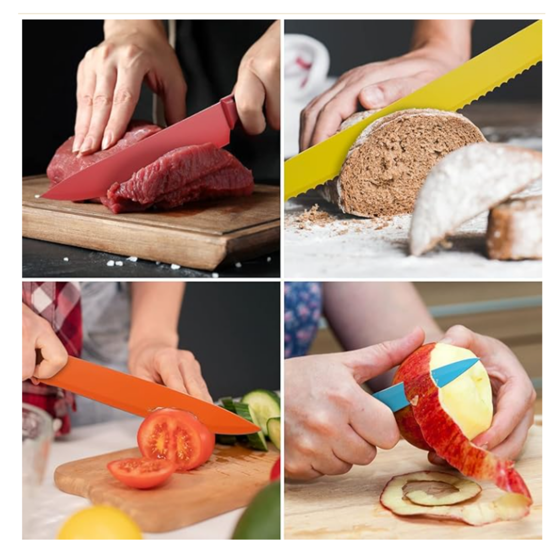🍴 Con el Set de Cuchillos EVDRTVERH, combina color, eficiencia y estilo en tu cocina. ¡Perfecto para chefs aficionados o expertos que quieren cortar con alegría!